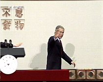 圖:布什總統(tǒng)結束回答學生提問