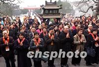 圖:臺(tái)灣佛教人士在西安大慈恩寺做法事 2002年02月22日 13:59 ![]() 由臺(tái)灣佛教人士組成的法門(mén)寺佛指舍利赴臺(tái)灣地區(qū)瞻禮(供奉)恭迎團(tuán),二十二日來(lái)到西安大慈恩寺做法事。中新社記者 錢(qián)興強(qiáng) 攝