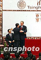 組圖:布什在清華演講 2002年02月22日 14:12 ![]() 訪華的美國總統(tǒng)布什二十二日在北京清華大學(xué)發(fā)表演講。中新社記者 賈國榮 攝 ![]() 美國總統(tǒng)布什二十二日在北京清華大學(xué)發(fā)表演講后下臺時,踩在臺階上身體搖晃了一下,他馬上和校長張開雙臂好似保護動作般開玩笑。中新社記者 賈國榮 攝