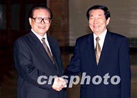 圖:江澤民離京出訪越南 朱镕基等送行 2002年02月27日 16:40 ![]() 中國國家主席江澤民二十七日離開北京前往越南訪問,國務院總理朱镕基等在北京人民大會堂送行。中新社記者 毛建軍 攝