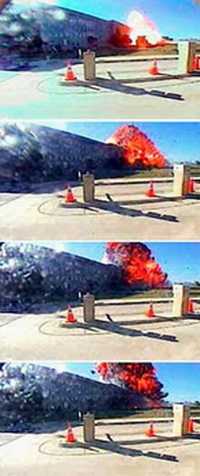 組圖:美國媒體公布飛機撞擊五角大樓瞬間照片 2002年03月08日 09:43 ![]() 五角大樓北面的監(jiān)視鏡頭拍攝的撞擊場面 中新網(wǎng)北京3月8日消息:美國傳媒公開一組去年“九·一一”恐怖襲擊事件中,國防部所在的五角大樓遭被劫持客機撞擊瞬間的照片。 據(jù)美聯(lián)社報道,這組照片共有五幅,是由懸掛在五角大樓北面的一個監(jiān)視鏡頭拍攝的。從照片中看,五角大樓北側(cè)遭飛機撞擊時,從地面騰起一團火焰,并冒出滾滾濃煙。