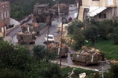 圖文:中東局勢驟變 以色列宣布阿拉法特為敵人 2002年03月29日 14:28 ![]() 以軍坦克開入拉馬拉包圍阿拉法特總部(法新社) 中新網(wǎng)北京3月29日消息:以色列今天宣布巴勒斯坦領導人阿拉法特為敵人,并派兵襲擊他在西岸城市拉馬拉的總部。 巴勒斯坦安全部隊和以色列軍隊爆發(fā)槍戰(zhàn)。以軍一輛推土機將阿拉法特總部大院的外墻撞開一個大洞,以軍坦克向其辦公室大樓發(fā)射炮彈,引起大火。 巴勒斯坦安全官員說,阿拉法特當時就在總部大樓內(nèi),但是他沒有受到傷害。 以色列總理沙龍在舉行內(nèi)閣會議后發(fā)表電視講話說:“政府決定視恐怖聯(lián)盟的頭目阿拉法特為敵人,現(xiàn)階段必須將他孤立! 沙龍還說:“以色列軍隊現(xiàn)在已經(jīng)進入阿拉法特在拉馬拉的總部,以軍將在巴勒斯坦民族權力機構的全境追捕他們! 以色列國防部長埃利澤稱拉馬拉市為“恐怖之都”。埃利澤表示,一色了無意“重新占領巴勒斯坦領土”。他說:“我們唯一想要做的就是打擊恐怖主義的基礎! 巴勒斯坦內(nèi)閣部長艾里卡特說,以色列的行動等于是宣布對巴勒斯坦的“全面戰(zhàn)爭”。艾里卡特在拉馬拉的總部說:“這顯然是對巴勒斯坦人的宣戰(zhàn)! 艾里卡特說:“奉行國際恐怖主義的以色列政府已經(jīng)宣布全面戰(zhàn)爭。沙龍意圖摧毀巴勒斯坦民族權力機構與和平進程!