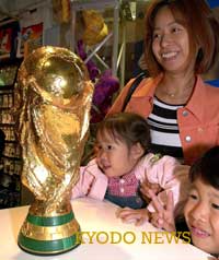 圖文:世界杯開幕準備今天進入最后50天倒計時 2002年04月11日 16:35 ![]() 世界杯開幕準備進入最后50天倒計時,圖為見到大力神金杯后喜笑顏開的母子 共同社圖