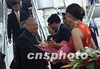 ![]() 香港特別行政區(qū)行政長官董建華與夫人十一日抵達(dá)海南,出席十二日開幕的亞洲論壇首屆年會。中新社記者 滿會喬 攝
