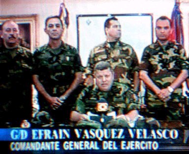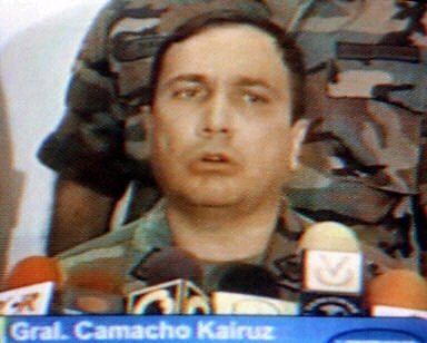 多圖:委內瑞拉高級將領發(fā)表電視講話加入叛軍 2002年04月12日 12:22 ![]() 委內瑞拉當?shù)貢r間4月11日晚(北京時間12日上午),國民警衛(wèi)隊的卡伊魯茲將軍宣布,總統(tǒng)查韋斯的政府已經"不再履行其職能",全國局勢已經被軍隊控制。此前已有多名高級軍官宣布不承認總統(tǒng)查韋斯,并要求其下臺。圖為委內瑞拉軍隊司(中).(春風)