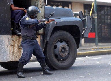 ![]() 委內瑞拉當?shù)貢r間4月11日晚(北京時間12日上午),國民警衛(wèi)隊的卡伊魯茲將軍宣布,總統(tǒng)查韋斯的政府已經“不再履行其職能”,全國局勢已經被軍隊控制。此前,委內瑞拉發(fā)生數(shù)十萬人罷工,群眾要求查韋斯辭職。他們與警察、國民警衛(wèi)隊以及總統(tǒng)的支持者發(fā)生了激烈沖突,至少已導致12人死亡,96人受傷。圖為騷亂中一名國民警衛(wèi)隊員躲在車后準備射擊。(春風)