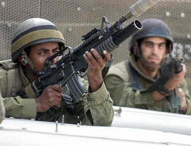 圖:以色列士兵發(fā)射催淚彈驅(qū)散巴勒斯坦游行者 2002年04月12日 16:35 ![]() 4月11日在以色列占領(lǐng)區(qū)拉馬拉城市的中心廣場上,以色列士兵向空中射擊并放催淚彈驅(qū)散巴勒斯坦抗議游行者。法新圖