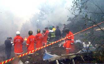 組圖:國航客機在韓國墜毀 韓國方面搶救生還者 2002年04月15日 14:15 ![]() 圖為4月15日在韓國墜毀的中國國航767客機殘骸。 ![]() 圖為韓國救援人員在墜機現(xiàn)場。 ![]() 圖為墜機現(xiàn)場。 ![]() 生還者被送往醫(yī)院后家屬前來探望。 ![]() 救援人員從墜毀的CA-129客機上找到的生還者。
