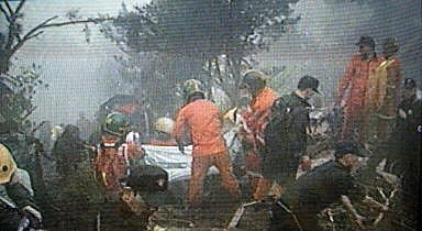 圖:國航客機在韓國墜毀 韓國方面搶救生還者 2002年04月15日 16:03 ![]() 中國國際航空公司一架波音七六七型飛機十五日從北京起飛于韓國墜毀。圖為韓國救援人員在墜機現(xiàn)場進行搶救工作。法新圖