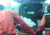 圖:4·15墜機事件喪生者被送出失事現(xiàn)場 2002年04月17日 10:29 ![]() 17日,在中國國航4·15失事現(xiàn)場,韓國當(dāng)?shù)卣沙鋈Ф嗑仍藛T在大雨后的山上搜索失蹤人員,搜索到喪生者的尸體并運送下山。