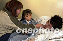 圖:四一五空難中國幸存者與家屬相會 2002年04月20日 19:00 ![]() 四·一五空難中國幸存者的家屬20日終于見到了躺在韓國醫(yī)院里的親人,生死相逢,熱淚盈盈。圖為幸存者金文學與妻子、女兒見面時的歡樂場面。作者:陶光雄