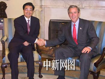 多圖:胡錦濤副主席與美國總統(tǒng)布什舉行會晤 2002年05月02日 08:48 ![]() 美國當(dāng)?shù)貢r間五月一日下午,美國總統(tǒng)布什在白宮會晤中國國家副主席胡錦濤。中新社 徐德金/攝 ![]() 美國當(dāng)?shù)貢r間五月一日下午,中國國家副主席胡錦濤在白宮與美國總統(tǒng)布什舉行會晤。圖為胡錦濤、布什微笑面對攝影記者短暫拍照。中新社 徐德金/攝 ![]() 美國當(dāng)?shù)貢r間五月一日上午,中國國家副主席胡錦濤與美國副總統(tǒng)切尼舉行會談。圖為胡副主席抵達(dá)白宮時向守候的記者揮手致意。中新社 徐德金/攝 中新網(wǎng)華盛頓五月一日電(記者徐德金)美國當(dāng)?shù)貢r間五月一日下午,中國國家副主席胡錦濤與美國總統(tǒng)布什舉行會晤。 會晤在白宮橢圓型辦公室舉行。在開放給媒體攝影記者短暫拍照時,布什、胡錦濤滿面微笑、頻頻握手,布什還風(fēng)趣地對記者說,“再拍一張”。 五月一日上午,胡錦濤與切尼副總統(tǒng)在白宮舉行了會談。胡副主席是應(yīng)切尼副總統(tǒng)的邀請訪問美國的。 下午,胡錦濤還會晤了美國總統(tǒng)國家安全顧問賴斯。 今天,大批媒體記者守候在白宮,采訪胡錦濤副主席與美國領(lǐng)導(dǎo)人的會晤、會談。 胡錦濤副主席今天在五角大樓還會晤了美國國防部長拉姆斯菲爾德。