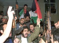 圖文:以軍撤離 阿拉法特首次公開(kāi)露面(大事回放) 2002年05月02日 09:08 ![]() ![]() ![]() (法新圖) 中新網(wǎng)北京5月2日消息:在以色列完成從其在安姆安拉的總部撤軍后,阿拉法特星期四首次公開(kāi)露面,但是仍然顯得非常憤怒,并斥責(zé)以軍為“恐怖分子” 在以軍撤出后不久,記者被允許進(jìn)入阿拉法特的官邸內(nèi)。數(shù)十名巴勒斯坦安全人員揮舞著槍支,鼓掌歡呼。還有人作出勝利的“V”字形手勢(shì),也有人互相擁抱慶祝。 但是阿拉法特的情緒仍然非常憤怒。他在以色列撤軍后的首次談話中說(shuō):“我發(fā)生什么事并不重要,重要的是發(fā)生在圣誕教堂的事情,這是一種犯罪! 阿拉法特大聲地說(shuō)道:“這對(duì)于巴勒斯坦人,對(duì)于阿拉法特,對(duì)于穆斯林,對(duì)于基督徒,對(duì)于聯(lián)合國(guó),對(duì)于美國(guó)和俄羅斯來(lái)說(shuō),都是不可接受的! 阿拉法特稱以軍士兵為“恐怖分子、納粹和種族主義者”他顯得非常疲憊,在長(zhǎng)達(dá)一個(gè)月的圍困中消瘦了不少,但是他針對(duì)以色列發(fā)表的演說(shuō)比往常更激烈。 附:巴勒斯坦民族權(quán)力機(jī)構(gòu)主席阿拉法特被圍困大事記 2001年 2001年12月3日:以色列空軍空襲阿拉法特在加沙的官邸。次日,以政府宣布巴勒斯坦民族權(quán)力機(jī)構(gòu)為“支持恐怖主義的實(shí)體”。同時(shí),以軍轟炸阿拉法特的專用直升機(jī),破壞加沙國(guó)際機(jī)場(chǎng),轟炸拉姆安拉阿拉法特官邸。受以軍圍困的阿拉法特留在拉姆安拉的官邸。 12月13日:以色列安全內(nèi)閣召開(kāi)緊急會(huì)議,決定斷絕同阿拉法特的聯(lián)系,稱阿拉法特不再同以色列有任何關(guān)系。 12月24日:以政府禁止阿拉法特前往伯利恒參加圣誕彌撒。 2002年 2月24日-28日:歐盟負(fù)責(zé)外交與安全政策的高級(jí)代表索拉納出訪中東,進(jìn)行新一輪拯救中東和平的外交努力。 3月13日:聯(lián)合國(guó)安理會(huì)通過(guò)決議,首次表示支持建立巴勒斯坦國(guó)的“遠(yuǎn)見(jiàn)”,敦促巴以沖突雙方積極配合國(guó)際社會(huì)的調(diào)解努力,立即停止一切暴力沖突,恢復(fù)和談。 3月27日:在阿拉法特缺席的貝魯特第14次阿拉伯國(guó)家首腦會(huì)議上,沙特阿拉伯王儲(chǔ)阿卜杜拉正式提出中東和平新建議,供大會(huì)審議通過(guò)。 3月29日:以政府以境內(nèi)不斷發(fā)生自殺性爆炸為由,宣布阿拉法特為“敵人”。以軍大舉入侵約旦河西岸城市拉姆安拉,并攻入了阿拉法特官邸。同日,以軍發(fā)動(dòng)“防衛(wèi)墻軍事行動(dòng)”,對(duì)杰寧市及杰寧難民營(yíng)發(fā)動(dòng)大規(guī)模軍事襲擊。到4月19日,杰寧難民營(yíng)始終處于以軍的重兵占領(lǐng)之下。巴方指責(zé)以軍在杰寧難民營(yíng)的軍事行動(dòng)中至少殺死了500人,使難民營(yíng)中8000多名巴難民無(wú)家可歸。巴方要求聯(lián)合國(guó)派出調(diào)查組進(jìn)行調(diào)查。 3月30日:聯(lián)合國(guó)安理會(huì)通過(guò)1402號(hào)決議,呼吁中東沖突雙方立即實(shí)現(xiàn);,要求以色列從包括巴勒斯坦城市拉姆安拉在內(nèi)的被占領(lǐng)土撤軍。 4月1日:以軍隊(duì)對(duì)約旦河西岸巴控制區(qū)再次發(fā)動(dòng)大規(guī)模軍事進(jìn)攻,并圍困了在拉姆安拉的阿拉法特總統(tǒng)府,以巴緊張局勢(shì)不斷升級(jí)。 4月5日:美國(guó)中東特使津尼在拉姆安拉同阿拉法特舉行會(huì)晤。 4月15日:以軍在拉姆安拉逮捕巴勒斯坦民族解放運(yùn)動(dòng)(法塔赫)在約旦河西岸的總書(shū)記巴爾古提。以方指控他是針對(duì)以色列的自殺爆炸和襲擊事件的主要組織者。 4月17日:美國(guó)國(guó)務(wù)卿鮑威爾結(jié)束在中東地區(qū)的穿梭訪問(wèn)。為期10天的斡旋中,他三會(huì)以色列總理沙龍,兩晤巴勒斯坦領(lǐng)導(dǎo)人阿拉法特,終究沒(méi)有說(shuō)服雙方達(dá)成一個(gè)停火協(xié)議。 4月19日:聯(lián)合國(guó)安理會(huì)通過(guò)第1405號(hào)決議,授權(quán)成立杰寧調(diào)查組,負(fù)責(zé)對(duì)以軍進(jìn)攻難民營(yíng)時(shí)殺害巴平民的事實(shí)真相進(jìn)行調(diào)查。但以色列方面則多次以調(diào)查組人員構(gòu)成不合理為由拒絕該小組進(jìn)入約旦河西岸。聯(lián)合國(guó)調(diào)查組滯留日內(nèi)瓦。 4月28日:以同意接受美國(guó)總統(tǒng)布什提出的旨在結(jié)束對(duì)巴領(lǐng)導(dǎo)人阿拉法特圍困的新建議。 4月29日:以色列和巴勒斯坦雙方證實(shí),3月29日以來(lái)一直被圍困在拉姆安拉官邸的巴勒斯坦民族權(quán)力機(jī)構(gòu)主席阿拉法特從當(dāng)天起重獲自由。 5月2日:在以色列完成從其在安姆安拉的總部撤軍后,阿拉法特首次公開(kāi)露面,但仍憤怒地斥責(zé)以軍為“恐怖分子”。