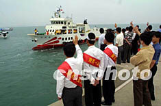 湄洲媽祖金身首次直航金門巡安 創(chuàng)下多個第一 2002年05月09日 10:03 ![]() 湄洲祖廟媽祖金身于本月8日從湄洲島客運(yùn)碼頭起駕,直航金門進(jìn)行為期5天的巡安活動。這是50多年來媽祖金身首次以海上直航的方式出巡,也是湄洲島首次實(shí)現(xiàn)對金門的直航。圖為湄洲群眾依依不舍地向遠(yuǎn)去的金門“太武號”船告別。鄭憲 攝