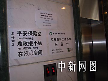 圖:各保險(xiǎn)公司在難遇家屬接待酒店設(shè)立工作組 2002年05月09日 17:07 ![]() ![]() ![]() 各保險(xiǎn)公司在大連嘉信酒店等“五七”空難遇難者家屬接待酒店設(shè)立工作組。中新社記者 齊彬 攝