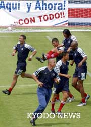 哥斯達(dá)黎加隊(duì)在日本鈴鹿市進(jìn)行首次訓(xùn)練(圖) 2002年05月15日 14:42 ![]() 哥斯達(dá)黎加國腳們進(jìn)入集訓(xùn)地后立刻開始訓(xùn)練(14日上午攝于三重縣鈴鹿市的運(yùn)動(dòng)場=共同社) 中新網(wǎng)北京5月15日消息:世界杯參賽國——哥斯達(dá)黎加國家隊(duì)14日在三重縣鈴鹿市的運(yùn)動(dòng)場內(nèi)進(jìn)行了首次訓(xùn)練,開始了備戰(zhàn)世界杯正式比賽的調(diào)整訓(xùn)練。 據(jù)“共同社”報(bào)道,哥斯達(dá)黎加隊(duì)作為首支到達(dá)日本的世界杯參賽國于13日晚上到達(dá)鈴鹿市。在主教練吉馬雷斯的指揮下,23名球員在用球訓(xùn)練中進(jìn)行了小比賽等,大聲呼喊汗流浹背。右膝傷病令人擔(dān)心的主力前鋒萬喬普也展示了輕快的動(dòng)作。 吉馬雷斯主教練表示“訓(xùn)練環(huán)境非常好。我們的目標(biāo)是在世界杯中盡可能走得遠(yuǎn)一點(diǎn)?傊椭袊(duì)進(jìn)行的首場比賽非常重要。”哥斯達(dá)黎加隊(duì)將在鈴鹿市集訓(xùn)到23日。
