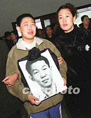 圖:“永別了,親人”--愛子手捧父親的遺像參加追悼會 2002年05月16日 19:40 ![]() 十六日,“五·七”遇難者首批遺體在大連殯儀館火化并舉行追悼會,交通部水運規(guī)劃設(shè)計院工程師毛鎧的愛子,手捧父親的遺像悲傷不已。逝者三十八歲,曾參加廣東大亞灣、海南天然氣碼頭、大連三十萬噸碼頭等多項國家重點工程規(guī)劃設(shè)計。作者:王麗南