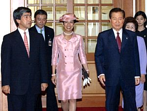 韓國總統(tǒng)金大中會見日本王室成員高圓王子(圖) 2002年05月30日 16:55 ![]() 韓國總統(tǒng)金大中會見日本王室成員高圓王子。(共同社圖) 中新網(wǎng)漢城5月30日消息:韓國總統(tǒng)金大中今天會見了日本王室成員、日本明仁天皇的表弟高圓王子伉儷。 昨天到達(dá)韓國的高圓王子和久子王妃,今天拜會了金大中。雙方進(jìn)行了45分鐘的會談,比原先預(yù)定的時(shí)間稍長。 在會談中,金大中總統(tǒng)告訴高圓王子夫婦,“我相信(你們的來訪)對于韓國和日本兩國關(guān)系的發(fā)展,是一個(gè)重要的事件! 據(jù)悉,作為主管體育的日本王室成員,高圓王子夫婦將參加明天晚上在漢城開幕的世界杯開幕式。這也是自從二戰(zhàn)以來,日本王室成員首次來韓國訪問,被認(rèn)為是發(fā)展兩國關(guān)系的一個(gè)重要契機(jī)。 本屆世界杯比賽由日本和韓國聯(lián)合舉辦,比賽開幕式31日晚上在韓國舉行,經(jīng)過一個(gè)月的鏖殺,最終的大幕將在6月30日在日本的橫濱落下。