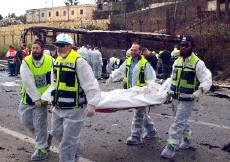 以色列汽車炸彈襲擊事件死亡人數(shù)上升至18人(圖) 2002年06月05日 15:47 ![]() 以色列汽車炸彈襲擊事件18人死亡,圖為工作人員清理現(xiàn)場。 中新網(wǎng)北京6月5日消息:以色列軍方電臺說,該國北部5日發(fā)生汽車炸彈爆炸事件,造成至少18人死亡,37人受傷,其中10人傷勢嚴重。 據(jù)法新社報道,這家電臺援引警方的消息說,16名以色列人在爆炸中喪生,其中包括多名士兵。 報道還補充說,另外還有兩具尸體身份尚未確定,可能是在車中的發(fā)動襲擊者。 在以色列北部港口城市海法,這輛放置有炸彈的汽車在一輛以色列公共汽車后面爆炸,引起公車燃起大火。