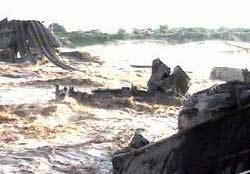 圖文:因洪水而中斷的隴海鐵路今晨恢復通車 2002年06月10日 14:06 ![]() 因洪水中斷的西安市隴海鐵路灞河大橋恢復通車 中新社西安六月十日電(張珂冽瑋)因山洪暴發(fā)而被沖垮的陜西省西安市隴海鐵路灞河大橋,已于今日凌晨零點五十五分恢復通車。有關人士稱,昨日滯留西安的近萬名旅客現(xiàn)已基本疏散。截至今天中午,已通過的雙向對開客車達到十五列。 據(jù)了解,灞河大橋位于隴海鐵路西安站以東,始建于一九三四年,因橋齡較長,橋基飽經(jīng)風蝕雨刷。九日凌晨至下午的一場大暴雨之后,灞河洪水流量達到每秒六百立方米。四個橋墩被沖掉,五孔橋被沖垮,造成一百零五米長的一段鐵路橋完全垮塌斷裂,繁忙的隴海鐵路上下行一度中斷達八個多小時,幸無人員傷亡。 記者今天在現(xiàn)場采訪時看到,昔日干涸的灞河洶涌澎湃,渾黃的激流拍打著河岸,在河床上形成了落差不等的瀑布,氣勢壯觀。河岸上站滿了搶險人員,大型挖掘機、推土機等搶險設備源源不斷地開赴現(xiàn)場。大批警察疏導交通,維持秩序,協(xié)助搶險。 一位老大爺心有余悸地告訴記者,昨天下午三點半,一列開往安康的火車剛剛從距隴海線灞橋鐵路橋東側的西康鐵路橋開過,一聲巨響,灞橋鐵路橋第四號橋墩轟然倒塌了。 據(jù)西鐵分局副局長杜振才介紹,為了盡快恢復隴海線的通車,當?shù)罔F路部門臨時修建一條便線與隴海線毗鄰的西康鐵路新橋相連。今日零點五十五分,第一列旅客列車K一七三(青島至蘭州)順利通過灞河大橋。 杜振才副局長表示,目前仍在繼續(xù)加固西康線新橋,每小時通過火車數(shù)為三列,有部分列車臨時改行其它線路,昨晚繞行列車數(shù)為十一列。 據(jù)透露,中國鐵道部對此十分重視,一再敦促盡快落實灞河大橋修復方案。現(xiàn)投入的搶險人力達一千五百人左右,估計修復工作需耗時兩至三個月左右。(完) 中新網(wǎng)北京6月10日消息:6月9日下午,流經(jīng)西安市東郊的灞河水流猛漲,將隴海線西安灞橋段鐵路大橋沖垮,致使交通大動脈隴海鐵路線中斷。據(jù)中央電視臺報道,今天早上6時20分開始,隴海線受阻列車從坍塌鐵路大橋旁的西康鐵路橋通過,隴海鐵路已經(jīng)臨時恢復通車。 據(jù)報道,工程部門計劃近期在坍塌鐵路橋處搭一座軍便橋,并計劃重新設計修建坍塌的鐵路橋。 6月9日下午,灞河水波濤洶涌,出現(xiàn)近20年來最大洪水。15時30分左右,隴海線西安至臨潼間的368米長的灞橋鐵路橋第4號橋墩轟然倒塌,鐵路線攔腰垮塌陷入激流。至17時,隴海鐵路橋第5號、2號和1號橋墩相繼發(fā)生塌陷,造成約150米鐵路橋完全垮塌斷裂。 灞橋鐵路大橋被沖斷后,致使300多次列車滯留,隴海鐵路陷入癱瘓,滯留西安的旅客接近1萬人。 相關報道:隴海鐵路灞河大橋因洪水而中斷 客貨運輸受阻