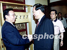 圖:海協(xié)秘書長李亞飛宴請"海聯(lián)會(huì)"參訪團(tuán) 2002年06月23日 20:50 ![]() 海協(xié)會(huì)秘書長李亞飛二十三日在北京宴請何智輝率領(lǐng)的臺(tái)灣“海聯(lián)會(huì)”參訪團(tuán)。滿會(huì)喬 攝