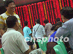 滬深股市上午全線飄紅 兩市成交額均超百億元 2002年06月24日 11:28 ![]() 受國(guó)務(wù)院“停止利用國(guó)內(nèi)證券市場(chǎng)減持國(guó)有股”決定的影響,二十四日中國(guó)深滬股市跳空9%高開,其后,全線飄紅保持至收盤。當(dāng)日北京市各證券營(yíng)業(yè)大廳里人聲鼎沸,股民奔走相告,準(zhǔn)備乘利好消息早日獲利。中新社記者 鄒憲 攝