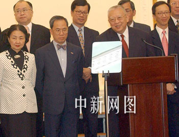 組圖:香港特首董建華與“新內(nèi)閣”拍攝全家福 2002年06月24日 12:36 ![]() 董建華與“新內(nèi)閣”拍攝全家福。香港特首董建華6月24日在香港禮賓府宣布二十一名“新內(nèi)閣”成員名單后,與將肩負重任的高官拍攝全家福。中新社傳真任晨鳴攝 ![]() 董建華宣布“新內(nèi)閣”名單。香港特首董建華6月24日在香港禮賓府宣布二十一名“新內(nèi)閣”成員名單。中新社傳真洪少葵攝 ![]() 曾蔭權(quán)梁錦松梁愛詩繼續(xù)輔佐董建華。香港特首董建華6月24日在香港禮賓府宣布二十一名“新內(nèi)閣”成員名單,原來的三位司長:政務(wù)司司長曾蔭權(quán)、財政司司長梁錦松、律政司司長梁愛詩留任。中新社傳真洪少葵攝