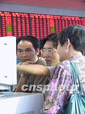 今天股市“牛氣”沖天 個股全線飄紅大多數(shù)漲停 2002年06月24日 15:29 ![]() 停止國有股減持的重大利好刺激,使滬深股市個股二十四日全線暴漲。中國股市的走勢目前受政策影響比較大,為明顯的“政策市”。圖為北京湘財證券營業(yè)廳內(nèi)的股民在研判股票走勢。作者:章永哲