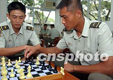圖:解放軍駐港陸軍生活豐富多彩 2002年06月28日 20:31 ![]() 駐守香港新界的中國人民解放軍陸軍部隊(duì)除了軍事技術(shù)高超外,不少官兵還是國際象棋高手。任晨鳴 攝