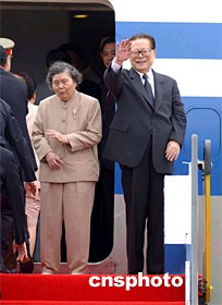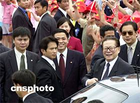 組圖:江澤民乘專機(jī)離開香港 2002年07月01日 15:18 ![]() ![]() 國(guó)家主席江澤民7月1日結(jié)束在香港出席特區(qū)政府成立五周年慶;顒(dòng)后,乘專機(jī)離開香港。中新社傳真 洪少葵 攝