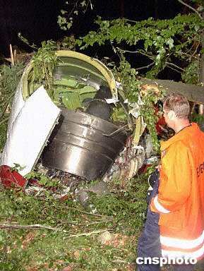 圖:墜毀飛機的發(fā)動機殘骸部分 2002年07月02日 15:46 ![]() 德國當(dāng)?shù)貢r間7月1日夜(北京時間2日晨),一架DHL公司的波音757貨機和俄羅斯圖-154客機在德國巴登-符騰堡州于伯林根鎮(zhèn)上空相撞并墜毀,至少已造成71人死亡。圖為一名消防員看見飛機的發(fā)動機殘骸部分。