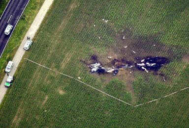 圖文:俯瞰飛機(jī)殘骸 大片地面被燒焦 2002年07月02日 19:54 德國當(dāng)?shù)貢r間7月1日夜(北京時間2日晨),一架DHL公司的波音757貨機(jī)和俄羅斯巴什基爾航空公司的圖-154客機(jī)在德國巴登-符騰堡州于伯林根鎮(zhèn)上空相撞并墜毀,至少已造成71人死亡,其中包括52名兒童。圖為散落在地上的飛機(jī)殘骸,可見大片地面被燒焦。(春風(fēng))