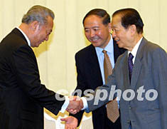 圖:錢(qián)其琛會(huì)見(jiàn)臺(tái)灣知名企業(yè)家大陸考察團(tuán) 2002年07月05日 20:15 ![]() 中國(guó)國(guó)務(wù)院副總理錢(qián)其琛五日在北京會(huì)見(jiàn)由辜濂松(左一)等組成的“臺(tái)灣知名企業(yè)家大陸考察團(tuán)”一行。作者:鄭萍萍