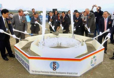 圖:朝鮮輕水反應(yīng)堆核電站主體工程開工典禮 2002年08月07日 18:43 ![]() 朝鮮半島能源開發(fā)組織(KEDO)援建朝鮮的輕水反應(yīng)堆核電站主體混凝土工程8月7日舉行了開工典禮。