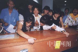圖文:在以色列遇難的兩名福建勞工遺體運(yùn)抵福州 2002年08月07日 22:43 ![]() 圖為福建中福公司副總經(jīng)理林炎,向死難者許恒勇、李斌的家屬發(fā)送慰問(wèn)金。中新社記者 劉可耕 攝 ![]() 圖為許恒勇的親屬哭倒在他的棺木上。中新社記者 劉可耕 攝 ![]() 圖為李斌的一雙兒女披麻戴孝迎接父親棺木。中新社記者 劉可耕 攝 中新社福州八月七日電 (記者 陳悅)今晚七時(shí)許,從香港起飛的MU五七八航班運(yùn)載著在上月以色列特拉維夫爆炸案中遇難的福建勞工許恒勇和李斌的遺體在福州長(zhǎng)樂(lè)機(jī)場(chǎng)降落。七時(shí)半,等候多時(shí)的親屬們迎來(lái)了遺體,隨即護(hù)送靈柩返回福州平潭故鄉(xiāng)。 等候遺體時(shí),兩人的親屬都沉浸在巨大的悲痛中。李斌和許恒勇的妻子自出發(fā)起就痛哭不絕,此時(shí)已聲音嘶;許恒勇的妹妹則突然昏厥過(guò)去,良久才蘇醒。許恒勇的叔叔介紹,兩人的親屬是今日早些時(shí)候冒著暴雨從平潭啟程的,許家家境不好,許恒勇是家中的頂梁柱,他的去世給家人帶來(lái)巨大打擊,他十三歲的大兒子受刺激精神恍惚,一度住院。李斌的親屬亦介紹,李斌的岳父聽(tīng)到噩耗后不久就去世了。 七時(shí)半許,靈柩被運(yùn)出機(jī)場(chǎng)貨運(yùn)出口,家屬們護(hù)送棺木運(yùn)上車(chē)。據(jù)稱(chēng),兩人原所屬的福建中福公司亦來(lái)機(jī)場(chǎng)接靈柩并為兩人辦理相關(guān)手續(xù)。該公司副總經(jīng)理林炎向兩人送上該公司職員募集的捐款。林炎介紹,以色列還將派官員及保險(xiǎn)公司職員來(lái)北京商討賠償事宜。據(jù)悉,二人雖均屬合法入境,但許恒勇已“跳槽”離開(kāi)原打工單位,而李斌屬超期非法滯留,故二人獲得的賠償標(biāo)準(zhǔn)將無(wú)法完全比照在“四·一二”耶路撒冷爆炸案中遇難的福建勞工獲得的以方賠償。(完)