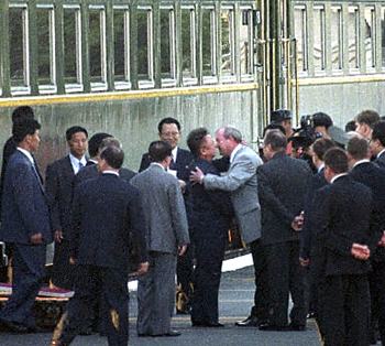 陪同金正日訪問的有朝鮮人民軍總參謀長(zhǎng)金永春、國防委員延亨默、勞動(dòng)黨中央書記金容淳、外務(wù)省第一副外相姜錫柱、國家計(jì)劃委員會(huì)委員長(zhǎng)樸南基、鐵道相金勇三等。