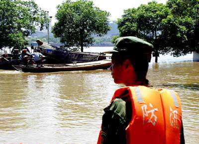 8月11日以來(lái),我省自北向南再次發(fā)生新的降雨過(guò)程。特別是從8月18日開始,全省普降中到大雨,部分地區(qū)降暴雨,主要集中在湘中、湘北及湘西南地區(qū),湘、資、沅、澧四水及洞庭湖水位持續(xù)上漲。截止20日14時(shí),湘江長(zhǎng)沙站水位37.4米,超警戒水位2.4米,湘江第六次洪峰即將到來(lái)。洞庭湖城陵磯水位33.5米,超警戒水位1.5米。目前,三口(松滋、藕池、太平)四水入湖流量45127立方米每秒,出湖流量19300立方米每秒,洞庭湖水位仍將攀升。2O日,岳陽(yáng)縣楊柳垸、毛家湖垸,湘陰縣湘濱垸,汨羅市屈原垸等處大堤分別出現(xiàn)翻沙和管涌等險(xiǎn)情;益陽(yáng)桃江縣花果山鄉(xiāng)發(fā)生管涌群;衡山縣境內(nèi)發(fā)生山洪。邵陽(yáng)市市區(qū)4條主要街道被淹;207國(guó)道雙牌段被洪水沖毀,交通中斷,形勢(shì)十分危急。湖南省委、省政府宣布全省進(jìn)入緊急防汛期。為奪取今年抗洪搶險(xiǎn)的勝利,省軍區(qū)號(hào)召: