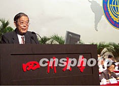 中國科協(xié)2002年學術(shù)年會五日在四川大學體育館隆重開幕。中國科協(xié)主席周光召致開幕詞。作者:陳雯