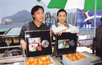 昨日英皇高層吳雨及鄭堯檉帶了兩箱柑前往探班﹐祝賀Joey及Eason的新碟同時奪得白金唱片佳績。而Eason更捧著早前在新加坡金曲獎中奪得的最受歡迎男歌手獎座照相。Eason是繼劉德華﹑張學(xué)友及張信哲后另一位得該獎的歌手。談到當(dāng)晚他剛巧去了洗手間而錯過親自上臺領(lǐng)獎的機(jī)會﹐Eason表示﹐真的不知自己會得獎﹐也從來不喜歡預(yù)知得獎名單﹐所以當(dāng)?shù)孟か@獎一刻感到愕然。