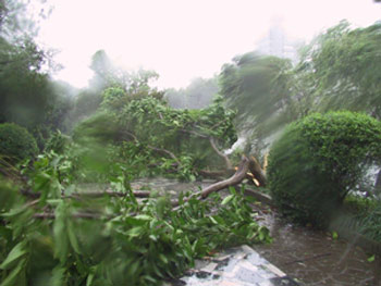 盡管離“森拉克”登陸還有2、3個(gè)小時(shí)左右,但臺(tái)風(fēng)的影響已給溫州造成部分破壞。(董晶亮)