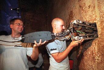 由于金字塔密室信道的容積很小,一般人無法進去,所以考古學家們只有動用微型機械人。負起這次探索重任的是“金字塔漫游者”,它是根據(jù)去年“九·一一”事件后協(xié)助搜尋生還者的機械車設計的。