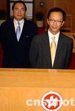 香港財政司司長梁錦松和經(jīng)濟發(fā)展及勞工事務(wù)局局長葉澍堃,9月17日公布香港6月至8月的失業(yè)率為7.6%,比5至7月下降0.2%。中新社圖 任晨鳴 攝