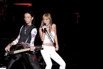 “流行散主”濱崎步是日本眼下最當(dāng)紅的藝人,她壓軸出場(chǎng),商業(yè)化的包裝和舞臺(tái)表演令人眼花繚亂,而其風(fēng)頭被先她出場(chǎng)的李玟所搶走。由于語(yǔ)言和熟悉度的關(guān)系,日方最受歡迎的歌手還是幾年前在中國(guó)風(fēng)靡一時(shí)的青春偶像酒井法子,雖然已為人母并淡出歌壇多時(shí),但七年后再次來(lái)到北京的酒井法子甜美依舊,尤其一首用中文演唱的《我只在乎你》,似乎把時(shí)光帶回從前,酒井法子和觀眾都格外激動(dòng)。