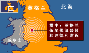 在英格蘭中部、倫敦等地的建筑搖晃了半分鐘,震中位于英格蘭西部伍爾佛漢普頓和達德利附近。
