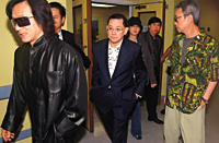 成龍出現(xiàn)引來(lái)一度混亂,但他很合作,肯停下來(lái)給記者拍照,不過(guò)他們一班人入病房不足五分鐘便離開,出來(lái)時(shí),成龍臉有笑容,但楊受成則神色凝重。及后,成龍上車時(shí)不忘叫記者“小心車輛”。問(wèn)他會(huì)否稍后再來(lái)探病?成龍不語(yǔ),只是揮手再見(jiàn)。羅文的二位胞姐也在院照顧弟弟,她們說(shuō):“籮記沒(méi)什么,情況有好轉(zhuǎn)!