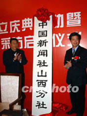 中國新聞社副社長兼總編輯郭招金和山西省政協(xié)主席鄭社奎,在歡樂的樂曲和來賓的掌聲當(dāng)中,為中新社山西分社揭牌。中華全國新聞工作者協(xié)會有關(guān)負(fù)責(zé)人,以及“華夏文明看山西”港澳臺記者團(tuán)也參加了此間活動。