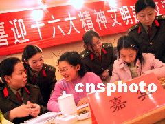 10月31日,濟(jì)南市槐蔭區(qū)部分先進(jìn)集體的優(yōu)秀青年代表匯聚在一起,舉行“喜迎十六大,精神文明建設(shè)交流會(huì)”。圖為會(huì)議結(jié)束后青年代表們?cè)诮徽劯惺。呂廷?攝