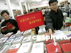 黨的十六大即將召開,溫州市新華書店專門布置了一個(gè)《迎十六大重點(diǎn)圖書》展臺,展出圖書有《江澤民“三個(gè)代表”思想研究》,《從民主新路到依法治國》等20余種,以滿足讀者的需求。劉峰 攝