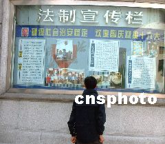 為確保社會治安穩(wěn)定,迎接十六大的勝利召開,上海市各區(qū)法院在法院門口開設了法院宣傳欄,為上海市民宣傳法律知識。井韋 攝