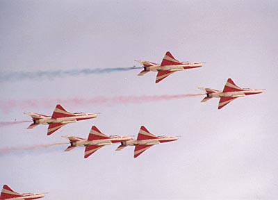 第二屆珠海航展1998年11月15日-22日在珠海機(jī)場(chǎng)舉行。中國(guó)空軍“八一”飛行表演隊(duì)在航展上進(jìn)行了飛行表演,這是該隊(duì)歷史上首次為普通公眾表演,也是他們換裝新機(jī)后首次公開(kāi)表演。展示了無(wú)間隔自動(dòng)鎖定系統(tǒng)六機(jī)編隊(duì)特技,把全新的裝備、全新的編隊(duì),全新的動(dòng)作奉獻(xiàn)給全國(guó)觀眾。
